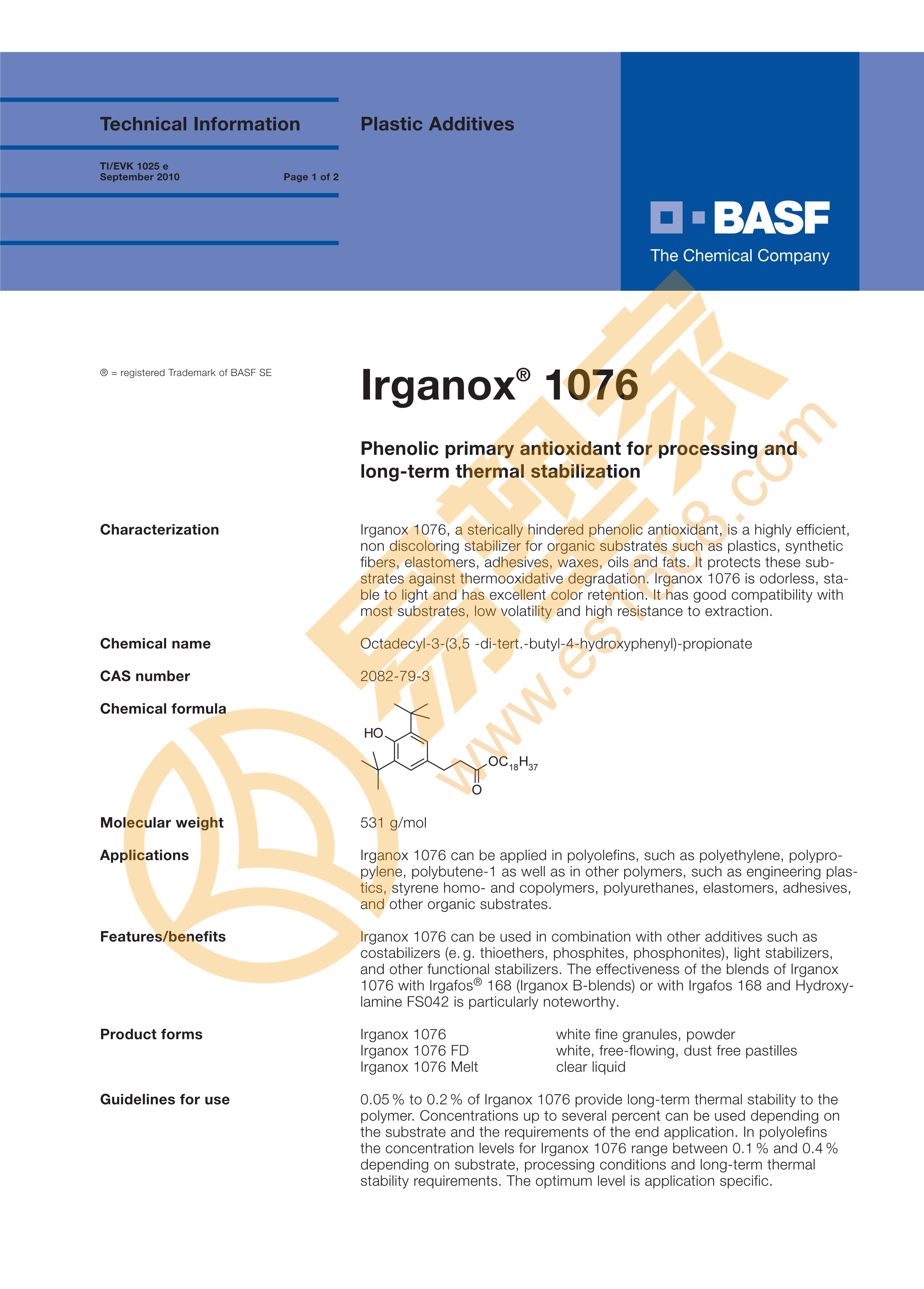 首页>//助剂/抗老化剂/抗氧剂>IRGANOX 1076