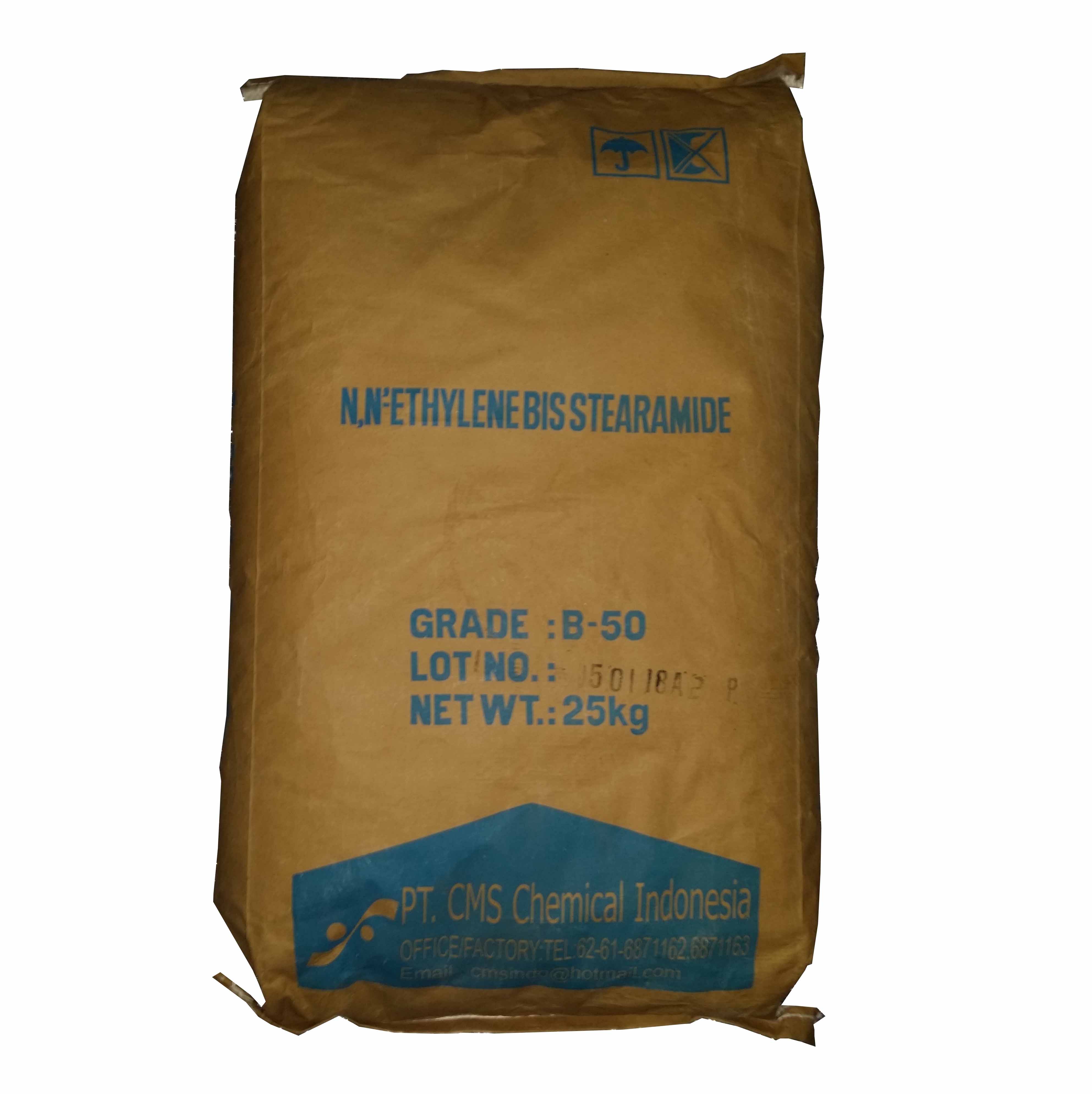 本品又名乙烯基双硬脂酰胺,为一硬而脆的白色高熔点蜡,工业品呈略带黄色的细小颗粒,无毒,对人体无副作用,常温下不溶于大多数溶剂,对酸碱和水介质稳定,能溶于热的氯化烃类和芳香烃类溶剂,其粉状物滑腻感较强,80℃以上对水具有可湿性。 该助剂是一种润滑和脱模剂,根据德国联邦健康机构中塑料委员会制定的一系列建议,该助剂能被用于许多商品中,符合多国有关间接接触食品的包装材料的规定,美国FDA已批准用于食物塑料